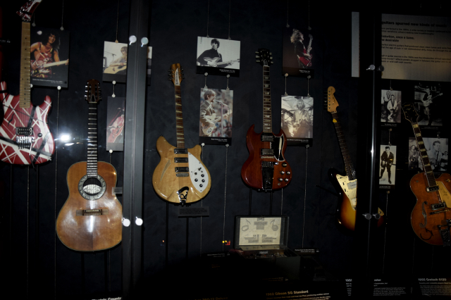 W środku najbardziej spodobała mi się kolumna cała zakryta gitarami. Poniżej gitara własnoręcznie - delikatnie mówiąc - zniszczona przez Kurta Cobaina z Nirvany podczas jednego z koncertów. Na kolejnym zdjęciu oryginalny strój Jimi'ego Hendrixa! -